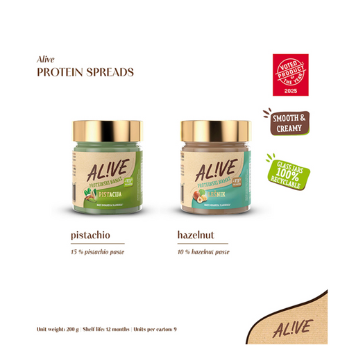 AL!VE spreads are used either as an independent snack or as an addition to other dishes such as pancakes or oatmeal. The product represents an excellent step forward in the direction of healthier and functional snacks that meet the modern nutritional needs of active individuals.
