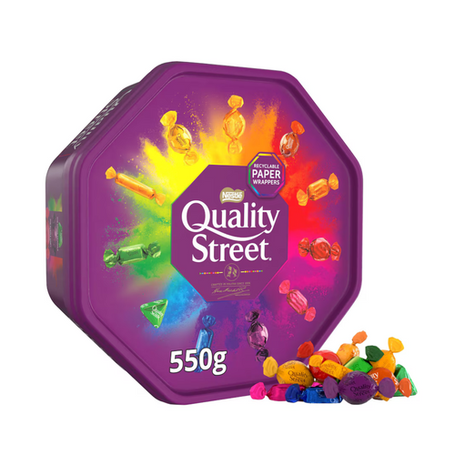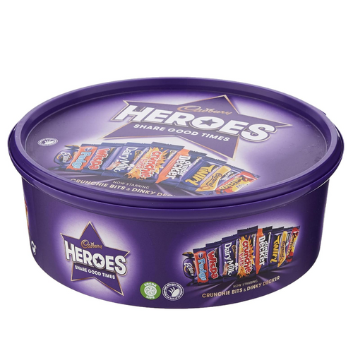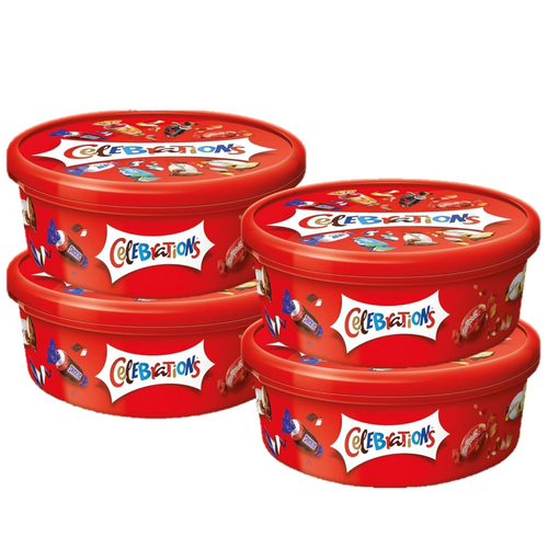 Celebration tub 500gQuality Street tub 550gRoses tub 550gHeroes tub 550g