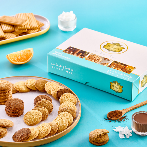 A box of luxurious biscuits (vanilla – orange – cinnamon – chocolate – coffee – coconut) made with the finest natural raw materials and a high level of accuracy to please all tastes.