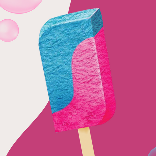 A fun and vibrant bubblegum-flavored ice cream, bursting with bright blue and pink colors that make every bite playful and sweet.