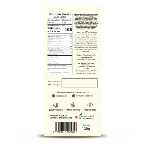 Choco Zen Dubai Chocolate Chewy Cheesecake Dark Chocolate Bar 130g