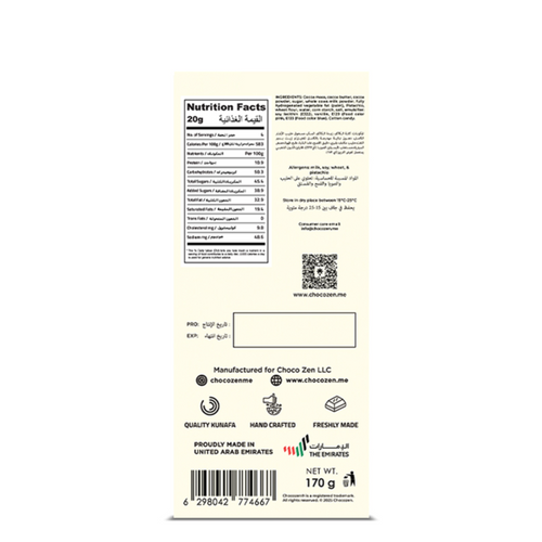 Choco Zen Dubai Chocolate Cotton Candy White Chocolate Bar 170g