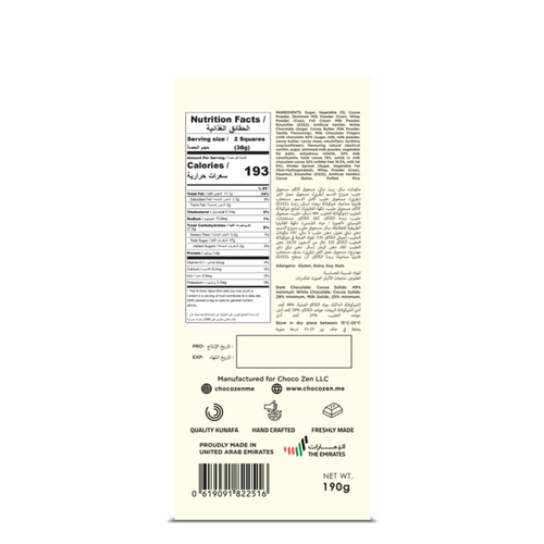 Choco Zen Dubai Chocolate Crispy Rice Buenissimo Milk Chocolate Bar 190g