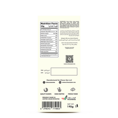 Choco Zen Dubai Chocolate Mango Kunafa White Chocolate Bar 190g