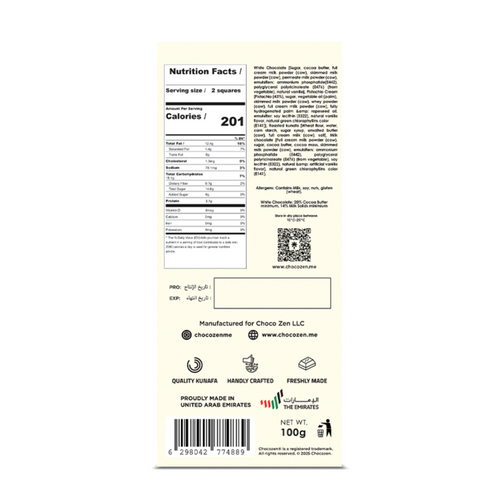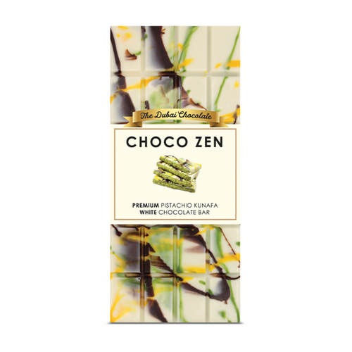 Choco Zen Dubai Chocolate Premium Pistachio Kunafa White Chocolate Bar 100g