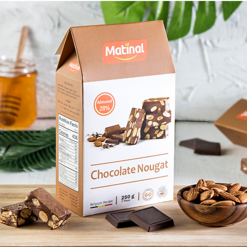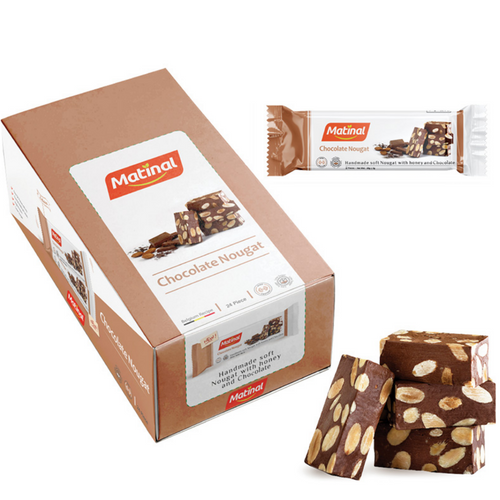 Soft delicious nougat with low sugar, high protein, enriched with high quality ingredients including premium chocolate, roasted almonds, egg whites and honey.