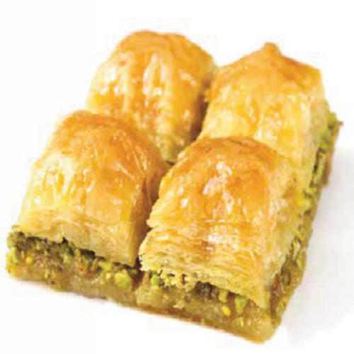 "It is prepared by using an average of 40 layers of phyllo. Green pistachio, known as gray pistachio, grown in Gaziantep and its region is used. The oil we use is an oil obtained from the Van region, which is defined as "Plain Oil".Baklava is baked in an oven at 160 degrees for 45 minutes. "