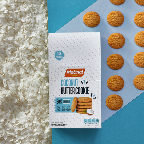 A delightful light crispy cookie, made with the finest types of premium wheat flour, natural butter, fresh eggs and delicious coconut and distinguished by its healthy ingredients; No trans fats and 30% less sugar.