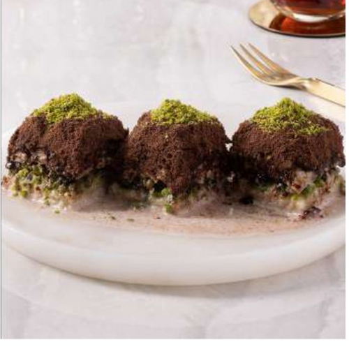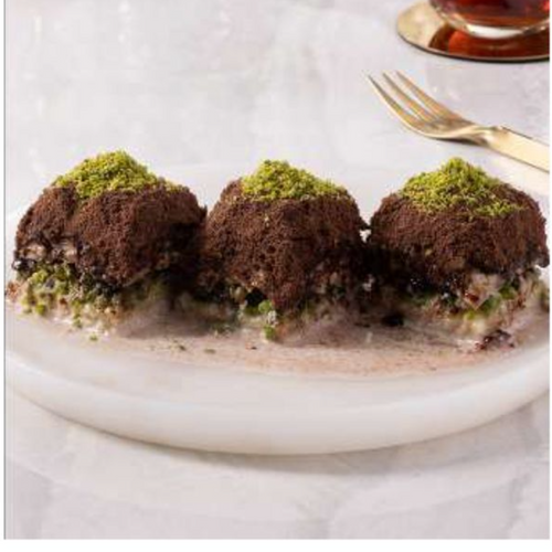 "It is prepared by using an average of 40 layers of phyllo. Green pistachio, known as gray pistachio, grown in Gaziantep and its region is used. The oil we use is an oil obtained from the Van region, which is defined as "Plain Oil".
