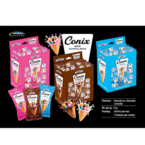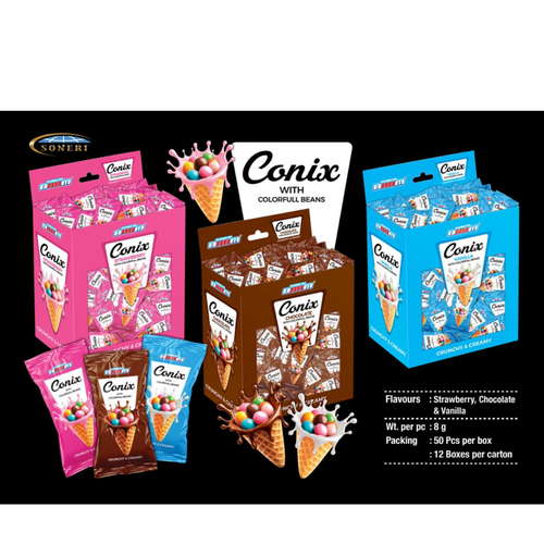 CONIX CONE WITH CHOCOLATE BEANS (CHOCOLATE, VANILLA & STRAWBERRY)