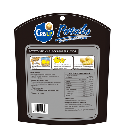 Crisup 40g Potato Sticks Black Pepper Flavor
