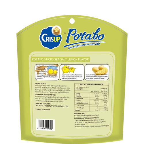 Crisup 40g Potato Sticks Sea Salt & Lemon Flavor