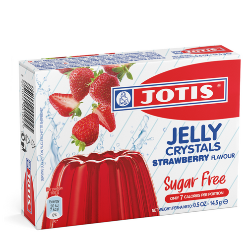 JOTIS Sugar Free Jelly with sweeteners are the lightest sweets around - and you can enjoy them without feeling guilty. They have only 7 calories per portion, which is the same as two small cherries. They are available in 6 different flavours. Strawberry, Cherry, Pineapple, Pomegranate, Lemon and Peach.