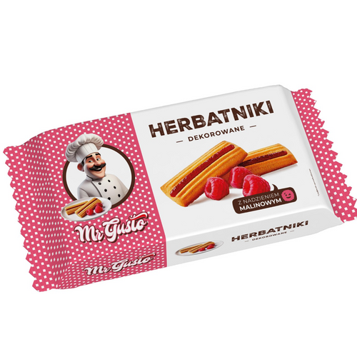 herbatniki dekorowane 145g z nadzieniem pomarańczowym lub z nadzieniem malinowym