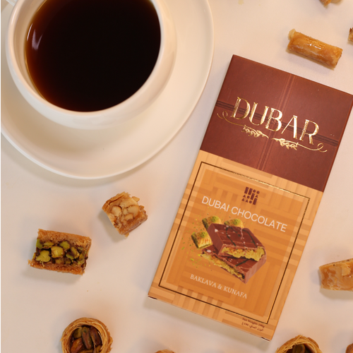 Dubar’s Baklava & Kunafa Chocolate is a masterpiece of flavour, blending the rich heritage of Middle Eastern sweets with the indulgence of fine chocolate. Each bite delivers a perfect harmony of crunchy nuts, golden honey, and delicate pastry layers, enveloped in smooth, velvety chocolate. The crispness of kunafa meets the nutty depth of baklava, creating a luxurious treat that melts in your mouth while leaving a lingering warmth of tradition and sweetness.