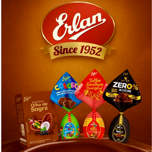 For more than 70 years, Erlan has been recognized as one of Brazil’s leading confectionery companies, combining tradition, quality, and innovation. Among its most successful seasonal products, the Erlan Easter Eggs collection stands out for its delicious taste, attractive presentation, and strong market appeal.