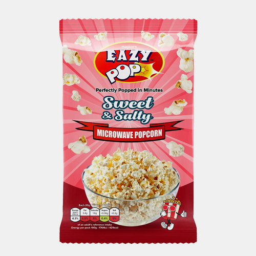 The best of both worlds. Eazy Pop Sweet & Salty Microwave Popcorn balances golden sweetness with a hint of savoury salt for a flavour combination that keeps consumers coming back.