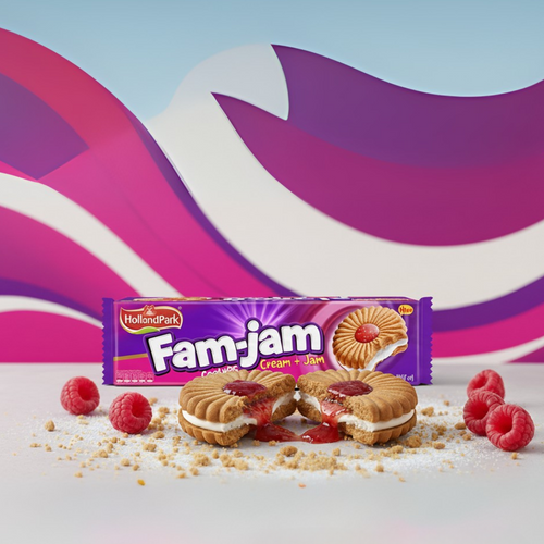 Fam-Jam by HollandPark is crafted to be the ultimate family favorite — a cookie that blends the richness of velvety cream with the sweetness of jam in every bite. Made from high-quality ingredients and baked with care, these cookies strike the perfect balance of taste and texture: crisp edges, creamy layers, and a fruity burst at the center. Ideal for teatime indulgence, lunchbox surprises, or festive gatherings, Fam-Jam is more than just a cookie — it’s a moment of togetherness. HollandPark ensures every pack delivers consistent quality, delightful taste, and the kind of treat everyone looks forward to sharing.