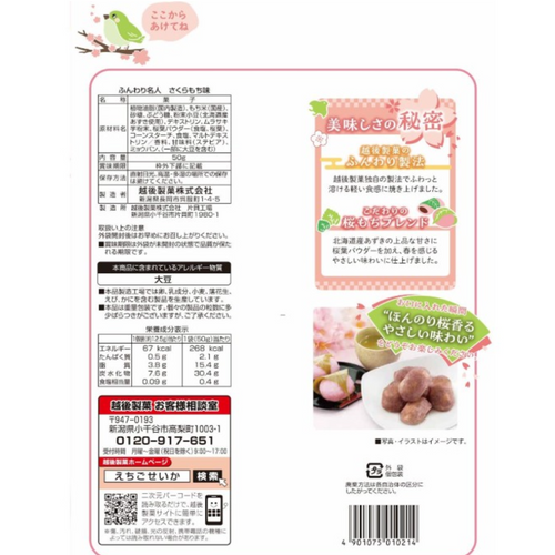 Soft, powder-dusted mochi bites with a gentle cherry blossom fragrance and a hint of red bean sweetness. Floral, chewy, and delicately sweet.