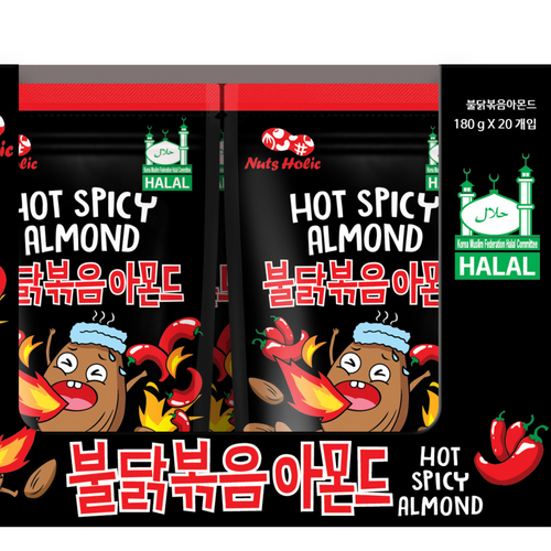 Experience the fiery kick of Korean-style bul-dak bokkeum (spicy chicken stir-fry) flavor packed into crunchy almonds! These spicy almonds are infused with a bold, savory, and addictive hot seasoning, delivering an unforgettable snacking experience for spice lovers! Especially Halal dietary consumers!