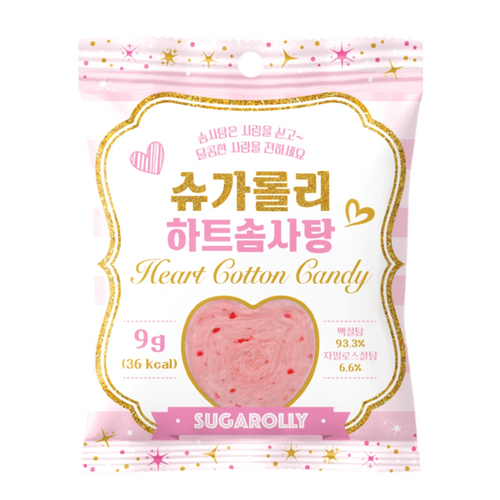 Romantic, heart-shaped cotton candy with creamy vanilla-berry sweetness and a soft, melt-in-mouth finish