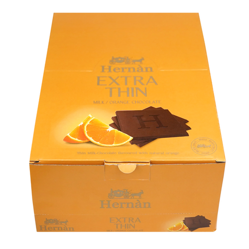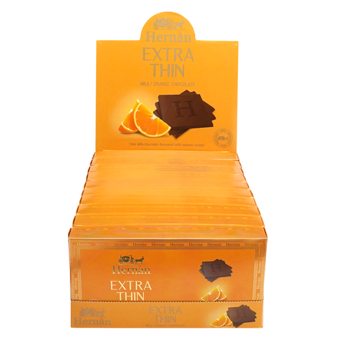 Hernan Extra thin Dark chocolate with Orange flavor.