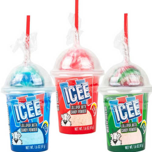 Lick it, dip it, love it! ICEE Dip-N-Lik Candy brings the frosty fun of your favorite frozen treat to candy form! Start with a tasty lollipop, then dunk it into fruity, flavorful candy powder for a blast of ICEE goodness in every bite. With cool flavors like Blue Raspberry, Cherry, and Watermelon, it’s a sweet, tangy, tongue-tingling treat that’s impossible to resist. Just like sipping an ICEE… but with way more dipping and licking!