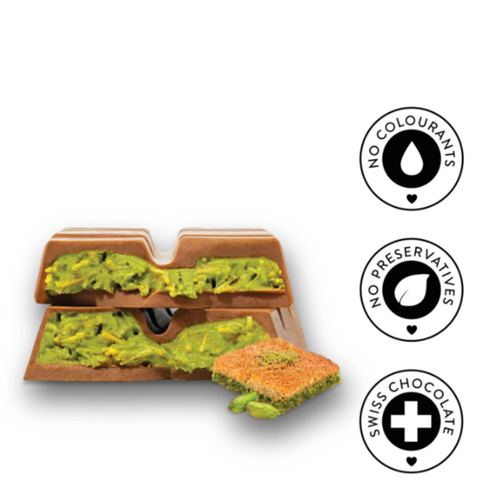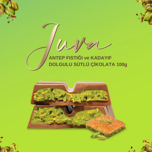 Juva Pistachio & Kadaif Dubai Chocolate (100g) unites the natural richness of Boz pistachios with the creamy elegance of Swiss milk chocolate and the delicate crunch of golden kadaif. This exquisite balance creates a one-of-a-kind taste experience that is both indulgent and memorable. Perfect as a personal reward or a thoughtful gift, Juva Kadayıf enhances every moment with a blend of tradition and modern delight. Each bite captures the texture, aroma, and elegance that make this creation a standout in fine confectionery.
