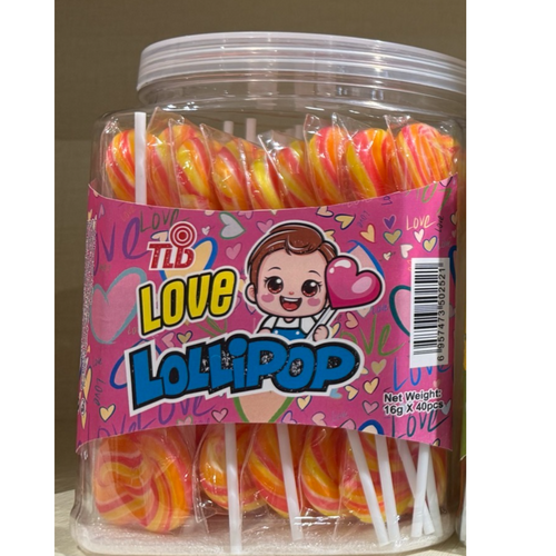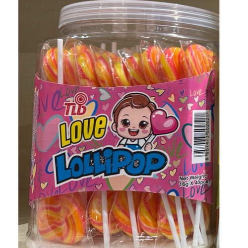 18 grams heart-shaped lollipop. Which is very popular in Southeast Asia.