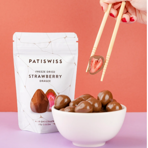 Milk Chocolate Coated Strawberry Dragee (80g) is crafted with premium Swiss milk chocolate and the natural sweetness of freeze-dried strawberries. The result is a delightful balance between the smooth, creamy richness of chocolate and the refreshing fruitiness of strawberry. Each bite delivers a burst of flavor and texture, making it an irresistible treat for chocolate and fruit lovers alike. Perfect as a gift or a personal indulgence, this dragee combines elegance and taste in one exquisite creation.