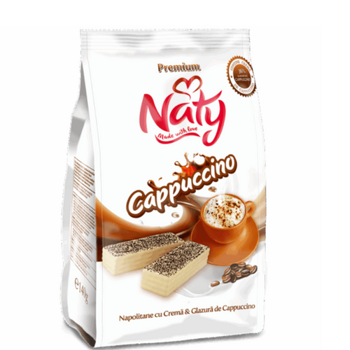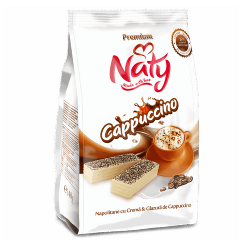 Indulge in the rich aroma of coffee with these crispy wafers layered with smooth cappuccino cream and finished with a delicate cappuccino glaze. A perfect blend of crunch and flavor for true coffee lovers.