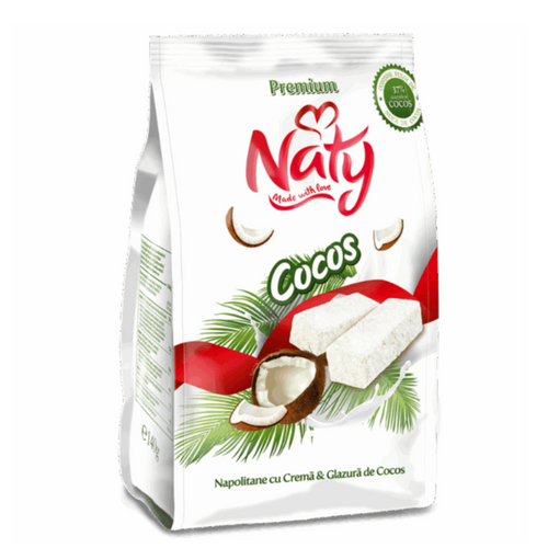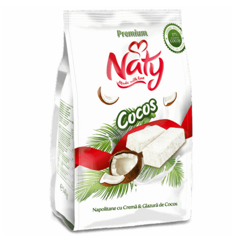 Light and crispy wafers filled with creamy coconut layers and covered in a fine coconut glaze. A tropical delight that combines sweetness and freshness in every bite.