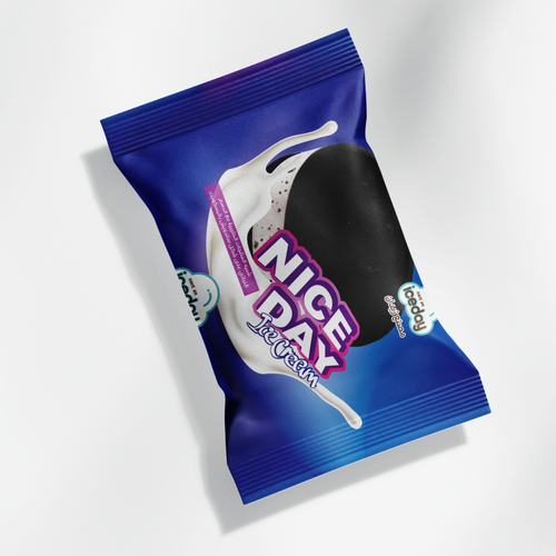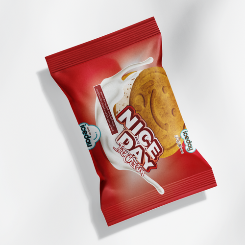 Vanilla ice cream with cookie or caramel biscuit pieces, layered between cocoa or caramel biscuits.