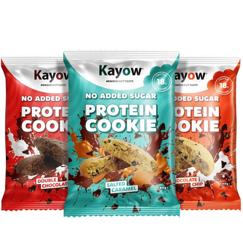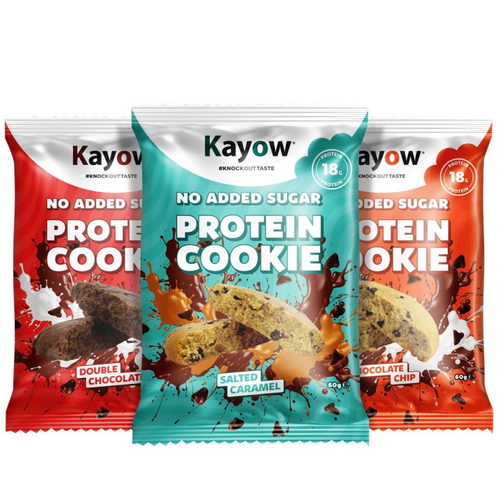 No Added Sugar Protein Cookies. Available in Milk Chocolate, Salted Caramel & Double Chocolate