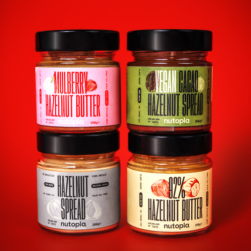 NUTOPIA GUILT-FREE HAZELNUT SPREADS AND TREATS.