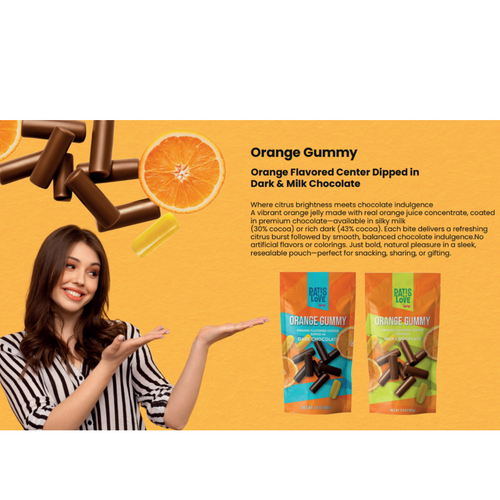 Discover a refreshing twist on classic indulgence with Patislove Orange Gummies Dipped in Dark Chocolate. This unique confection pairs the bright, citrusy sweetness of orange gummies with the deep, refined notes of premium dark chocolate, creating a flavor harmony that is both vibrant and sophisticated.