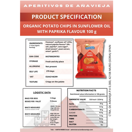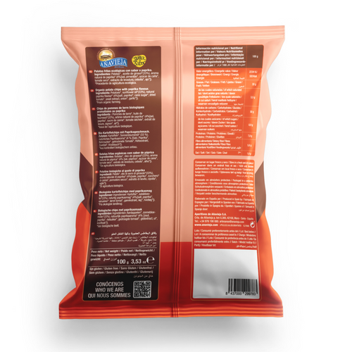 Organic potato chips gently fried in sunflower oil and seasoned with natural paprika. A bold, smoky flavor with a perfect crunch — made with 100% organic ingredients and no additives.