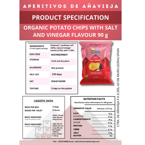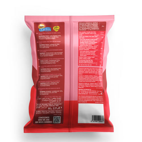 Organic potato chips cooked in sunflower oil and seasoned with a tangy blend of salt and vinegar. Bold, zesty flavor with a perfect crunch — made from 100% organic ingredients.