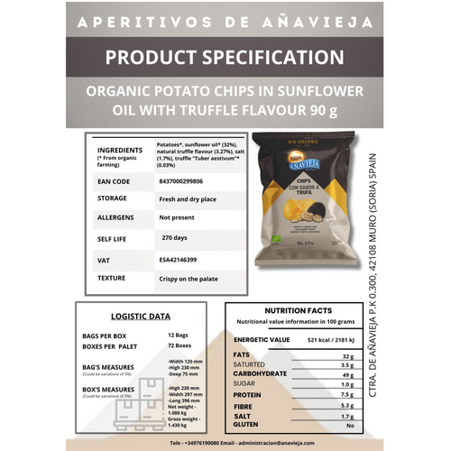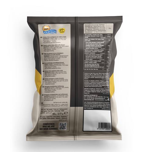 Gourmet organic potato chips delicately fried in sunflower oil and infused with natural truffle aroma. Rich, earthy flavor and irresistible crunch in every bite — a refined snack for true truffle lovers.