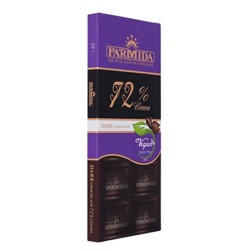 Experience the real taste of chocolate with each piece of Parmida 72% cocoa dark chocolate bar and immerse yourself in the great aroma of cocoa. This chocolate bar is perfect for those who follow a vegetarian or vegan diet because it is dairy-free and vegan-friendly.