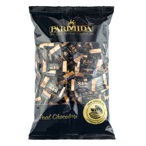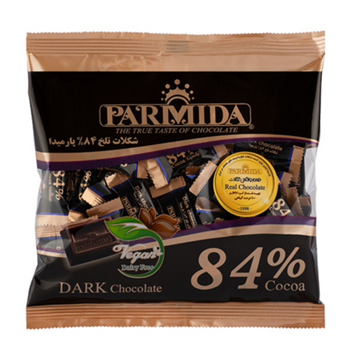 Parmida 84% cocoa dark chocolate contains 84% cocoa powder and pure cocoa butter. Parmida 84% cocoa dark chocolate is ideal for those who follow a vegetarian or vegan diet, as these chocolates are both dairy-free and vegan-friendly.