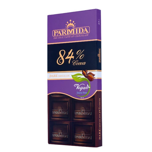 Parmida 84% cocoa dark chocolate bar is also great for those following a vegetarian or vegan diet, as these chocolates are dairy-free and vegan-friendly.
