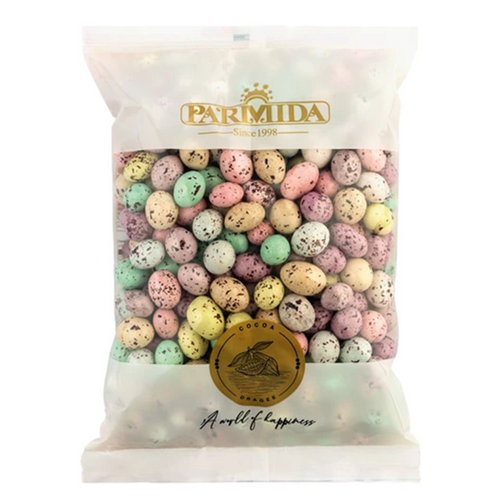 Parmida Choco Egg Chocolate Dragees are made from high-quality and wholesome ingredients, offering multiple health benefits. The sweet wheat kernel center is rich in fiber and energy, paired with premium cocoa that contains antioxidants, vitamins, fiber, and essential minerals such as potassium, calcium, and magnesium, creating a nutritious and ideal combination.
