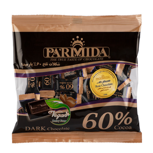 Parmida 60% cocoa dark chocolate contains 60% cocoa powder and pure cocoa butter. Parmida 60% cocoa dark chocolate is ideal for those who follow a vegetarian or vegan diet, as these chocolates are both dairy-free and vegan-friendly.