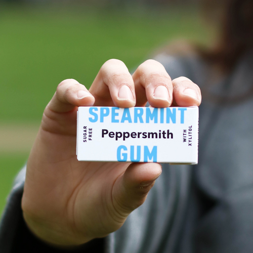 100% Xylitol Spearmint Chewing Gum, made with real British mint oil. Proven to improve oral health with no artifical colours or sweeteners. Vegan, gluten-free and sugar-free.