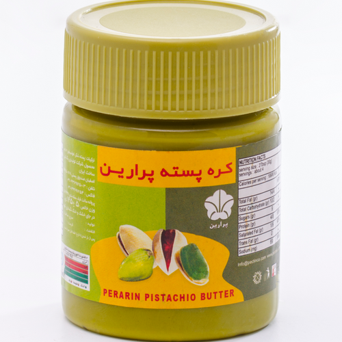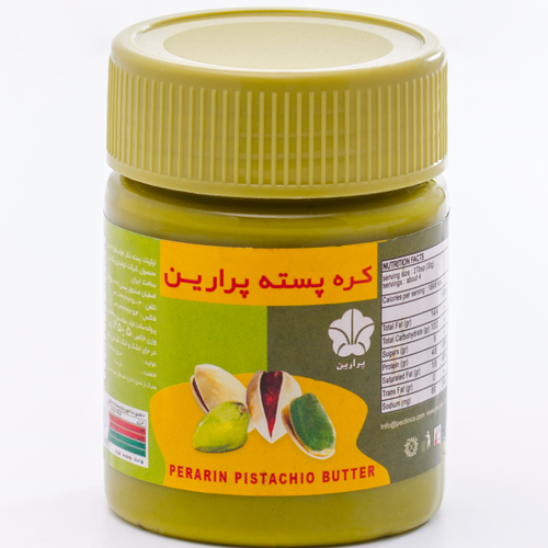 Pistachio butter is produced in the weight of 125 grams. This product has high antioxidants that reduce cell death and thus prevent cancer. This product also contains fiber, iron, phosphorus, calcium, protein and vitamins B, A and E, which strengthens the immune system and vision and prevents diseases such as stroke, brain deterioration and arthritis. The green color of Perarin pistachio butter is without the use of any dyes or additives and is only due to the natural color of pistachio kernels.