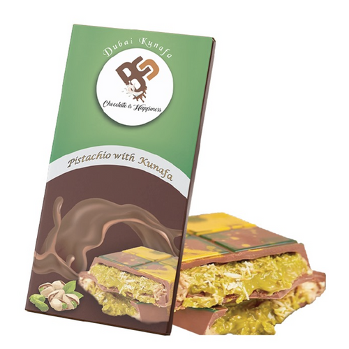 Indulge in a rich and exotic treat with our Pistachio Kunafa Chocolate – a perfect harmony of creamy chocolate, crunchy kunafa, and roasted pistachios.