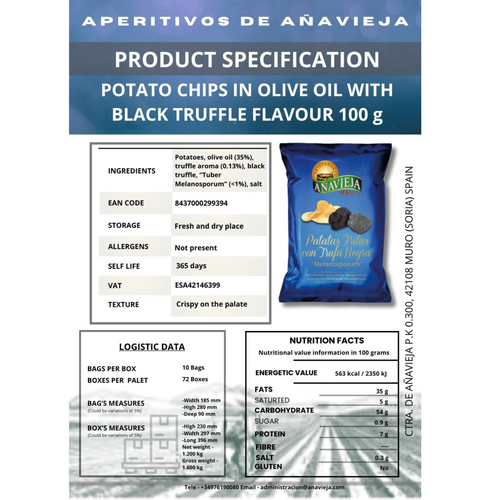 Potato chips cooked in premium olive oil and infused with the rich, earthy aroma of black truffle. A gourmet snack with bold flavor and a perfectly crisp texture — indulgent and unforgettable.