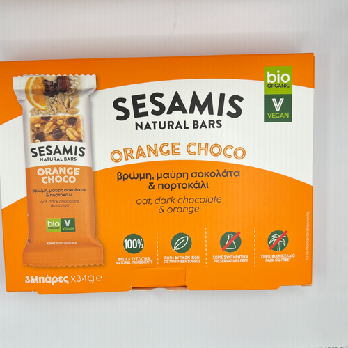 Delicious vegan combination with oat, wheat, peanuts, almonds, darkchocolate and crispy rice, sesame seeds and orange juice. Organic, plantbased, vegan, no preservatives, artificial flavors and colors, free of:added sugar, gluten, GMO