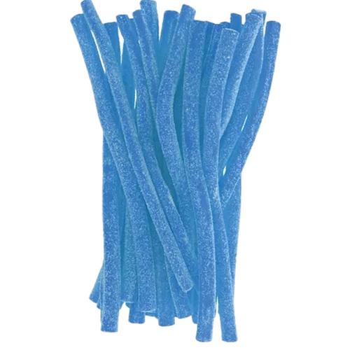 BEMBO Licorice Sour Filled – Raspberry (Long Size) features long, chewy blue raspberry licorice ropes filled with a tangy-sweet creamy center and coated in sour sugar for an extra zing. This 200g tub is bursting with bold berry flavor, perfect for candy lovers who crave a fruity and sour kick.